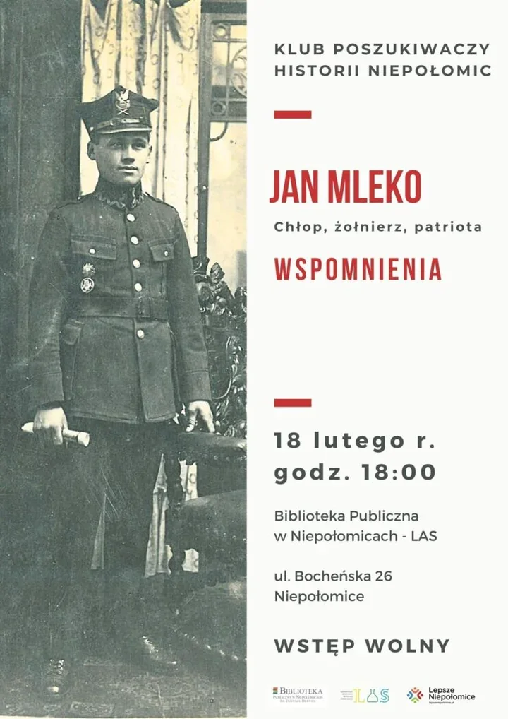 Na kolejnym spotkaniu w ramach Klubu Poszukiwaczy Historii Niepołomic zostanie przedstawiona biografia Jana Mleko - mieszkańca Woli Batorskiej, ochotnika z 1918 roku, obrońcy Lwowa i uczestnika wojny polsko-bolszewickiej. To postać, której życie przez dekady czekało na wydobycie z rodzinnych pamiątek. Organizatorzy podkreślają, że wątek lokalny splata się tu z historią ogólnonarodową - u Mleko w zagrodzie bywał między innymi Wincenty Witos, co dodaje opowieści dodatkowego lokalnego kolorytu. 😊📜