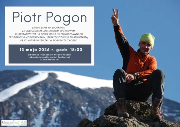W Niepołomicach szykuje się spotkanie, które może zostać w głowie na długo po wyjściu z biblioteki. Biblioteka Publiczna w Niepołomicach razem z Laboratorium Aktywności Społecznej zapraszają na wieczór z Piotrem Pogonem - człowiekiem, który zamienił własną walkę w opowieść o sile, ruchu i nieodpuszczaniu. 🙂