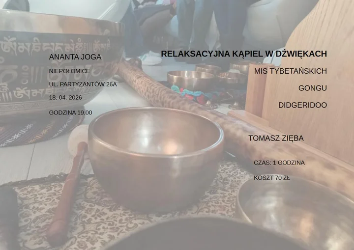 Organizatorem spotkania jest Ananta Joga, a wydarzenie prowadzi Tomasz Zięba, który zaprasza do doświadczenia dźwięku jako formy odpoczynku i wyciszenia.